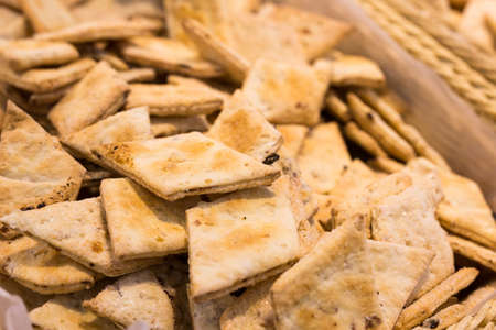 Crackers with rosemary and dill. Culinary background. Space for text.