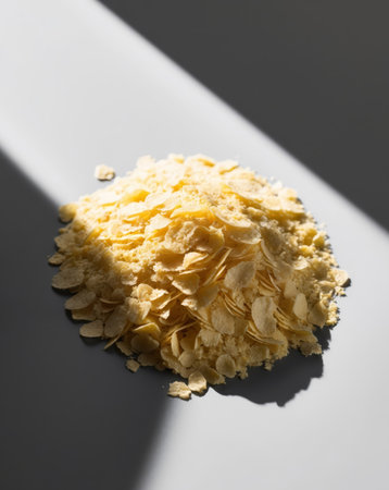 AI Generated. Nutritional Yeast Flakes Pile on Black Background Top View