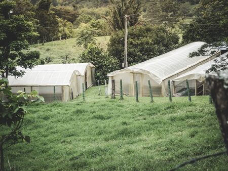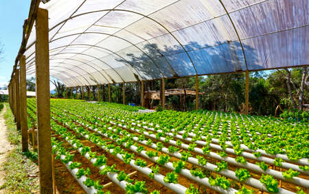 Vegetable garden inside a greenhouse with lettuces and other greenery in a farm near Bento Goncalves. A friendly country town in southern Brazil famous for its wine production.