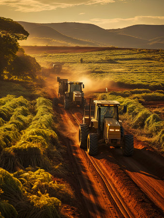 Fresh organic produce is being prepared for delivery in a vibrant farm landscape filled with lush greens and warm sunlight embracing natures beauty.
