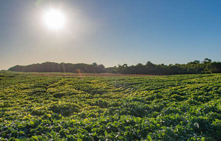 Growing plants. Plantation with various vegetables on farm in sunny day.