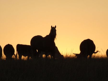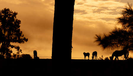 Heard of donkeys on the field in the sunset