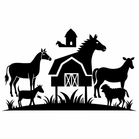animal farm silhouette, isolated on white background