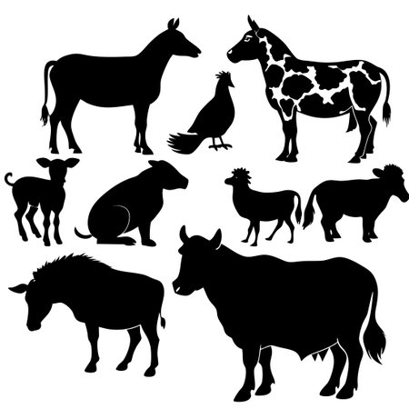 Silhouette Collection of Adorable Farm Animals Ready for Your Creative Use