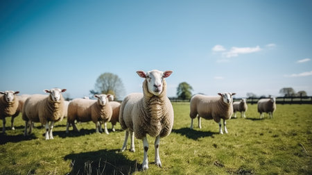 A flock of sheep grazing in a field in the countryside, AI Generated illustration