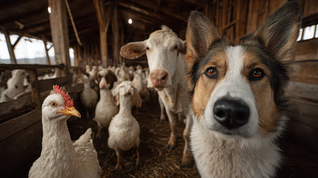 Farm Animals and Barn in the concept of livestock farming and animal husbandry