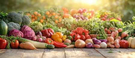 Colorful assortment of fresh vegetables spread on rustic wooden crates. A perfect capture of healthy and vibrant produce, great for food enthusiasts and gardeners. Generated A.I.