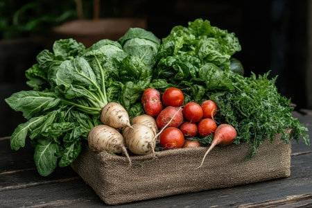 Freshness of nature bounty, a healthy meal of organic vegetables generated by artificial intelligence
