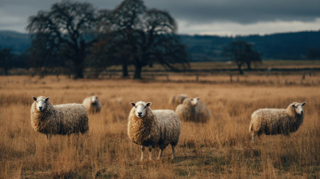 Sheep in nature on meadow. Farming outdoors