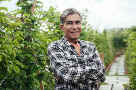 Portrait of local asian elderly senior farmer at farm.