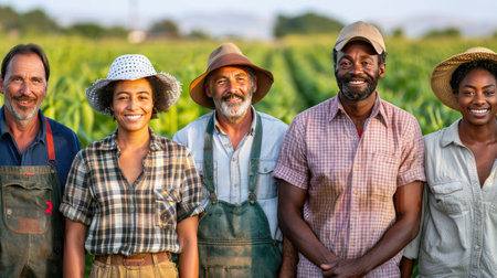 Diverse Group of Farmers in a Lush Field Smiling