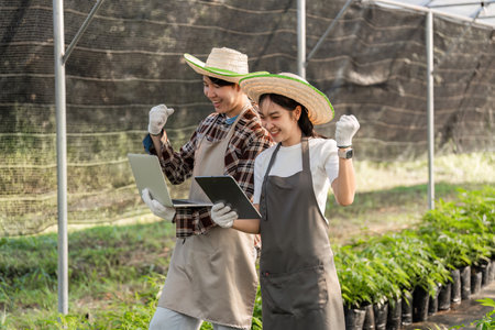 Innovative Gardening Couple Embraces Technology for Successful Modern Farming Practices in a Greenhouse Setting