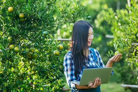 Farmer orange lady,The gardeners are collecting orange,Orange Garden.
