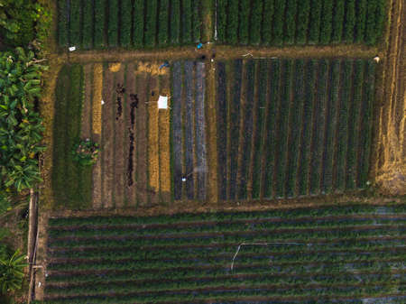 aerial view of colorful farm with vegetables and rice at Changhua, Taiwan