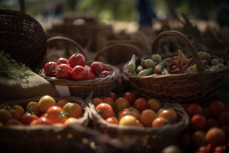 close-up of baskets overflowing with fresh and colorful vegetables, created with generative ai