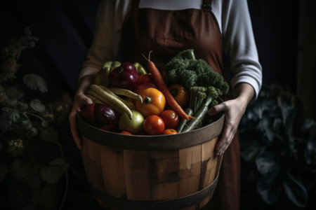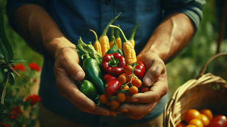 Hands holding freshly picked vegetables from a local farmers market. ai generated