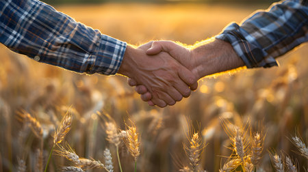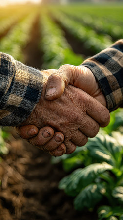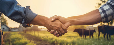 Two farmers shake hands symbolizing agreement and collaboration in agricultural work