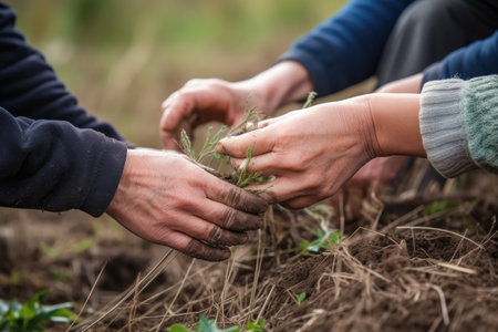 People holding young plants in their hands to promote environmental sustainability and collective responsibility for a better future