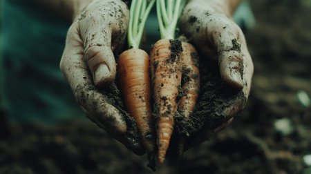 Hands holding dark soil, symbolizing connection to nature and earth. rich texture of soil conveys sense of nurturing and growth, evoking feelings of sustainability and environmental awareness