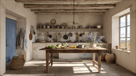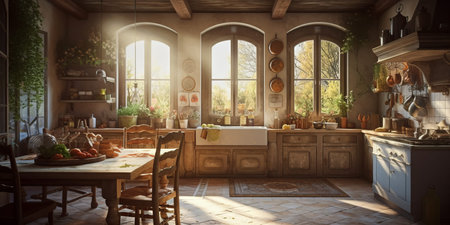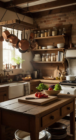 Warm and inviting rustic kitchen with natural light indoors