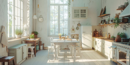 country style white bright and light kitchen room