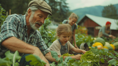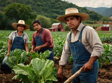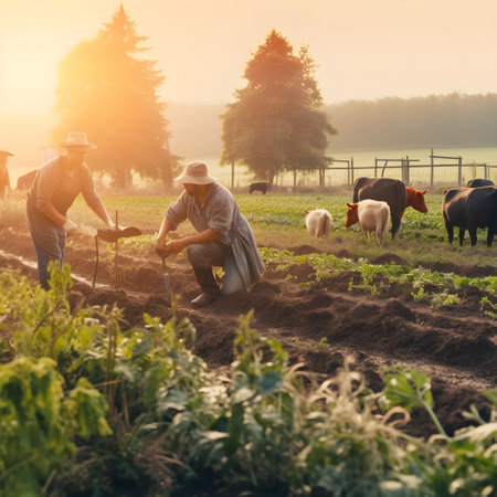 An AI generated illustration of farmers working in an organic farm