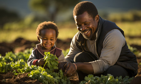 Group of African farmers taking care of young corn plants, promoting sustainable agriculture and soil health