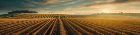 beautiful farmland with plowed field on a sunny day professional photography