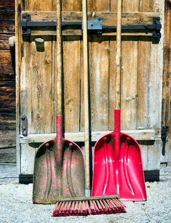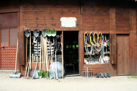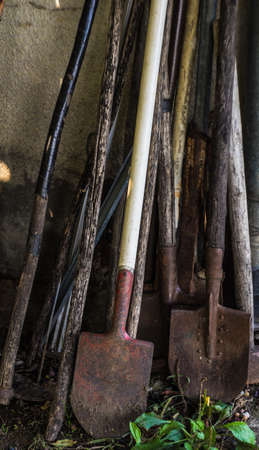 Tools for agriculture are rustic garage, shovel, rake and the other garden items