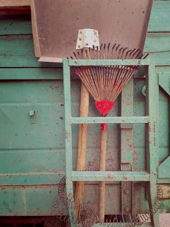 Old vintage details and things. The stylized photo. Retro agriculture. Picture taken in the open air