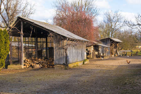 Old rustic house and chickens