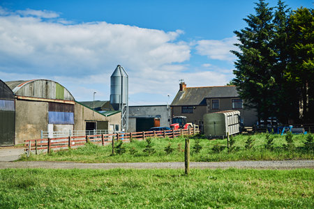 The perfect spot for a dairy farm. a dairy factory on wide open farmland in the countryside.