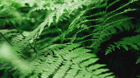 green fern leaves petals background. Vibrant green foliage. Tropical leaf. Exotic forest plant. Botany concept. Ferns jungles close up. jungle atmosphere and calm zen meditation