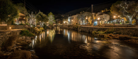 Soft lights twinkle along the river as the village celebrates Christmas and New Year creating a magical peaceful atmosphere at night.