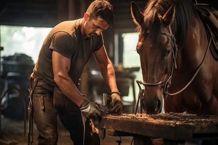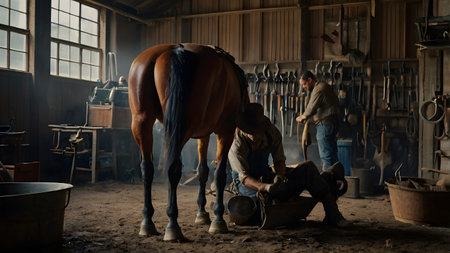 Artistry in Action: A Farrier Skillfully Shoeing Horses