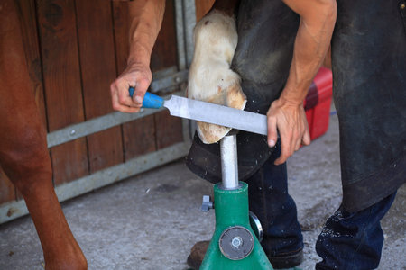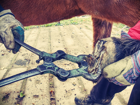 Necessary hoof care of horse before being mounted horseshoe. Cut of worn keratin.