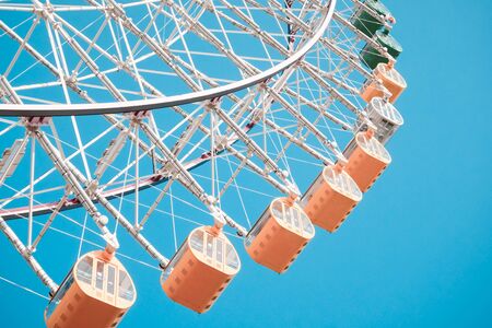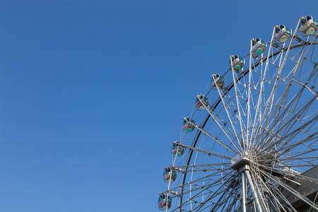 Ferris wheel on blue sky background. In the amusement Park. The weekend