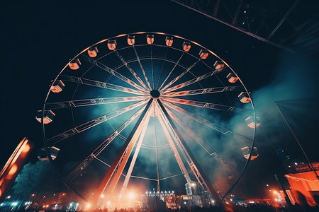 An awe-inspiring panoramic view from atop a magnificent Ferris Wheel. This stunning image captures the excitement and wonder of the amusement park from high above, offering a unique perspective on the world below