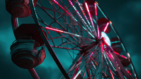 A ferris wheel neon light night amusement park empty moody sky dramatic