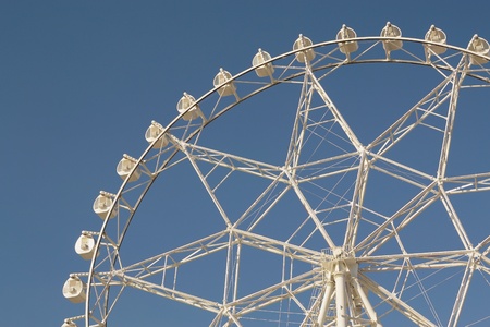 The white Ferris Wheel over blue sky.