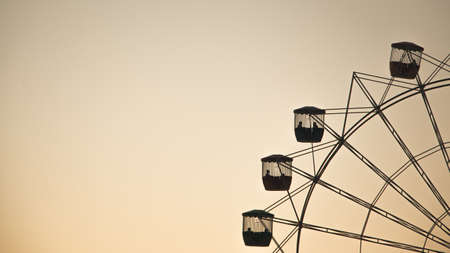 Ferris wheel in amusement park at sunset, vintage color tone.