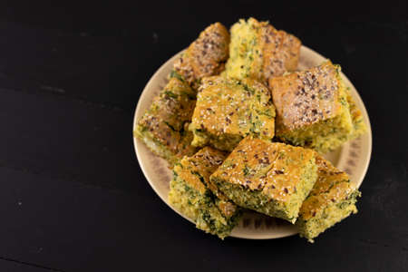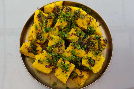 Gathiya is a very popular Gujarati snacki in brown bowl on white