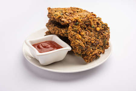 Mixed Dal Vada or pakoda is an Indian snack, served with tomato ketchup or green chutney