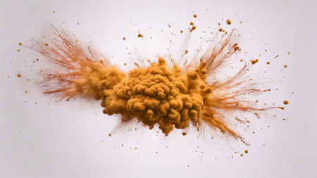 A striking ink explosion captured in mid-air, spreading intricate details and textures against a clean white background. Perfect for creative designs, artistic projects, and abstract concepts