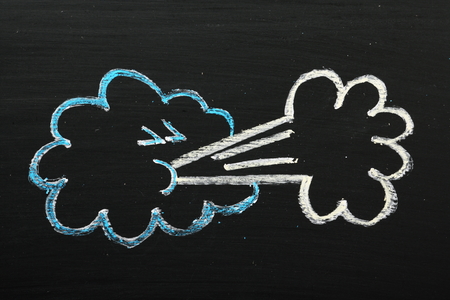 Simple Chalk drawing on a blackboard of a weather symbol in the form of a cloud blowing wind