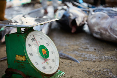 A vintage industrial scale, the ideal measuring tool for determining the weight of goods.