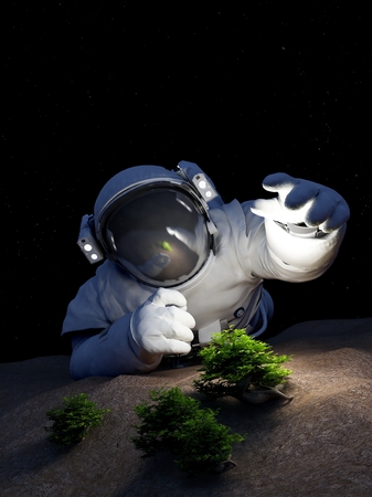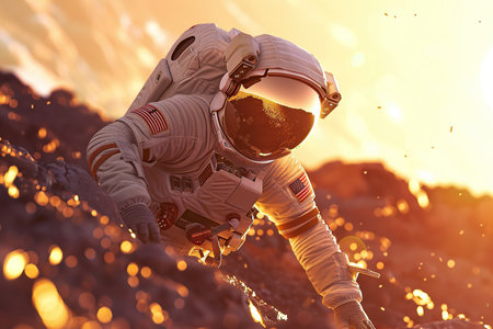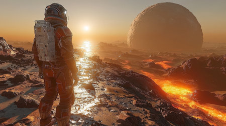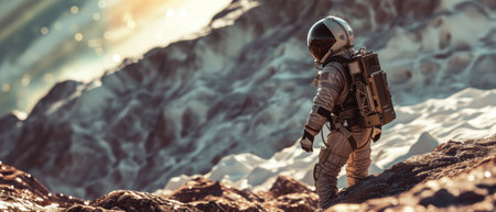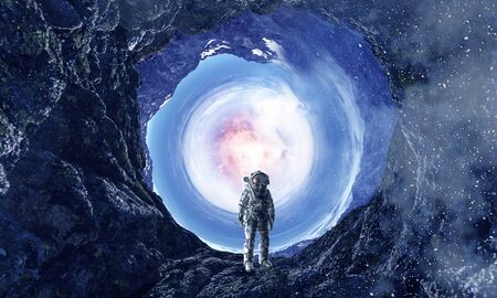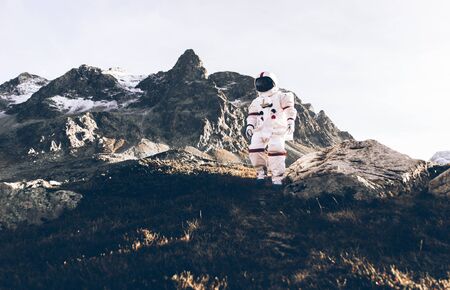 Astronaut exploring a new planet. Searching for a new home for humanity. Concept about science and nature