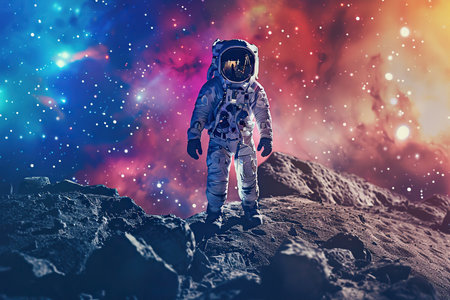 An astronaut explores a vibrant universe, highlighting the potential of space tourism