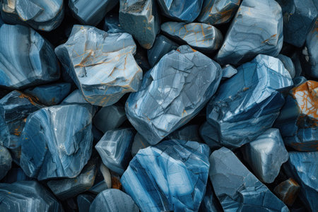 Close up of natural blue rocks with textured surface, creating a stunning background filled with geological patterns and cool tones