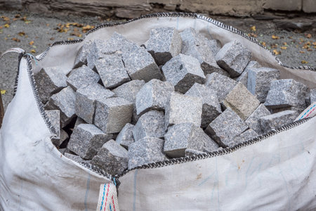 Bag with paving stones in road construction